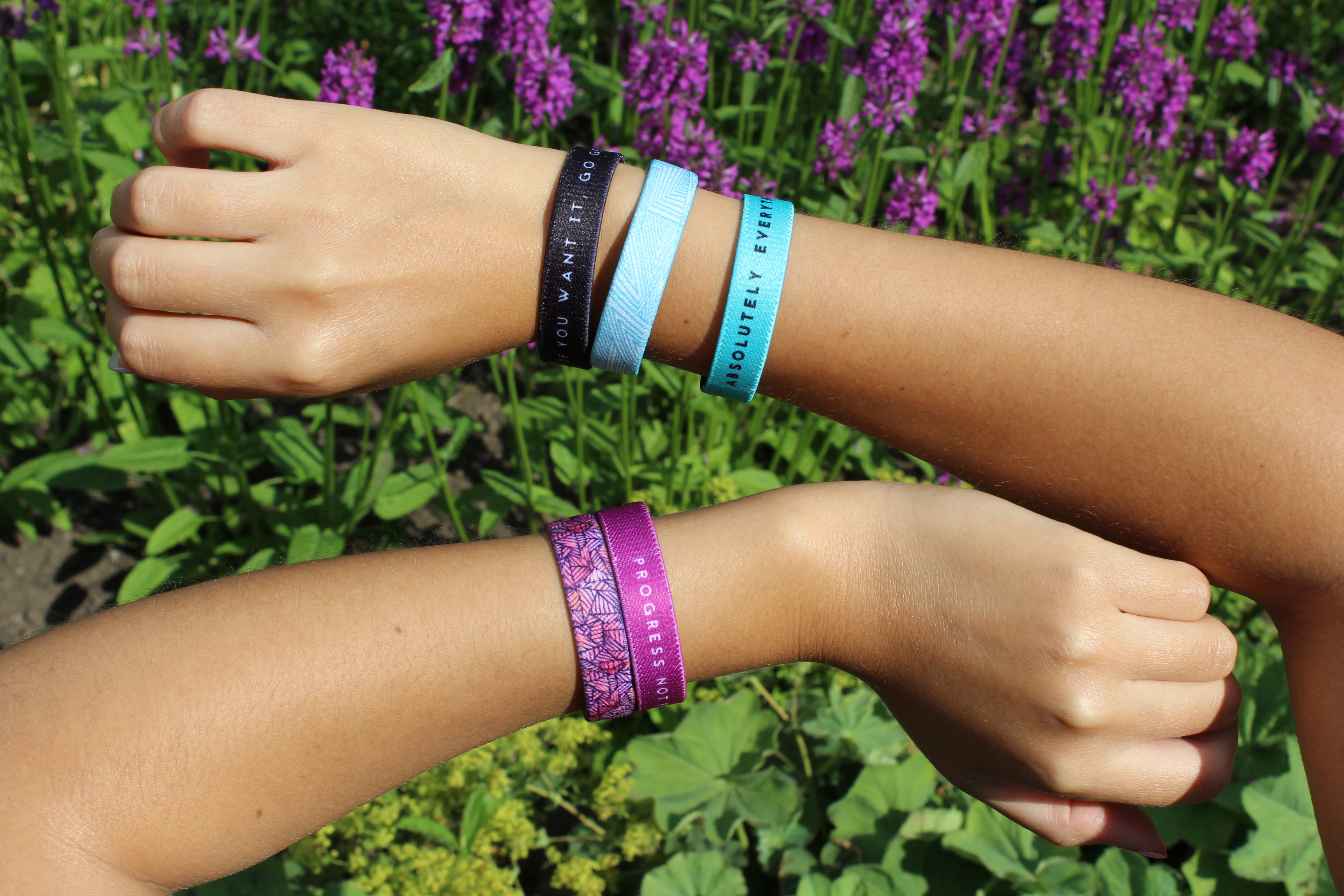 Fabric wristbands with a positive affirmation on the reverse